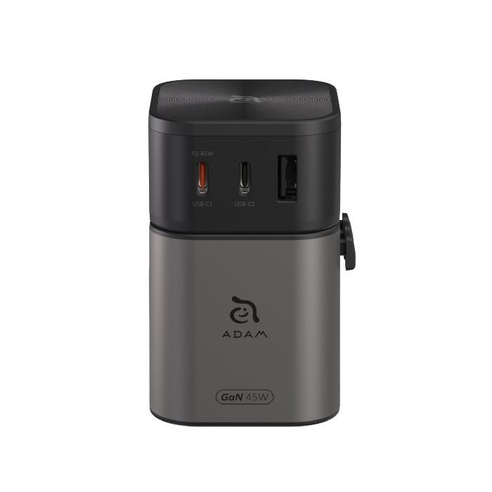 محول شاحن سفر عالمي T45 بقوة 45 وات من Adam Elements باللون الأسود
