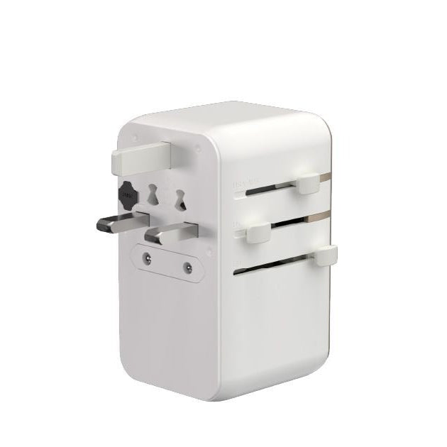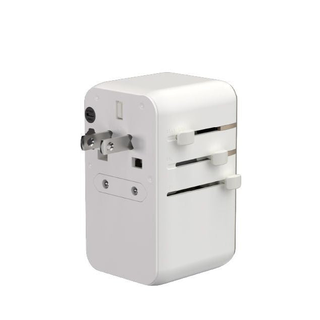 محول سفر عالمي T100L بقوة 100 وات من Adam elements مع كابل USB-C مدمج باللون الأبيض