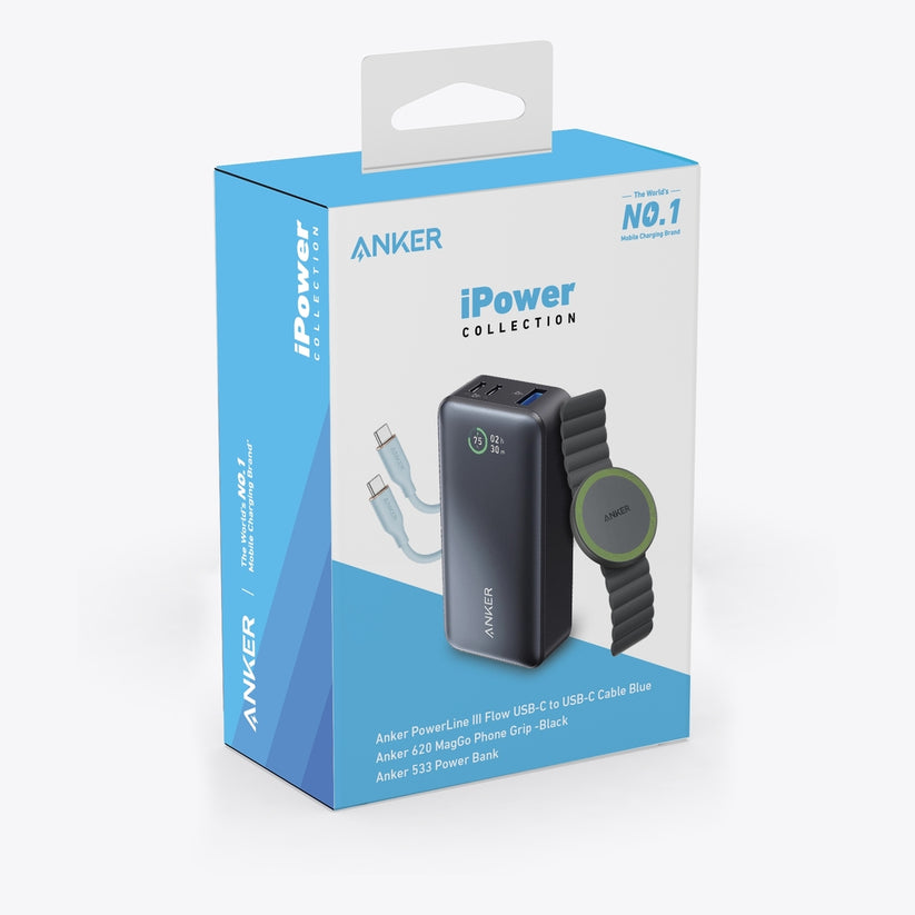 مجموعة أنكر آي باور (A1256H12+A25A1+A8553H31، 10 كيه ماه باور بانك + قبضة + كابل من نوع C إلى C)