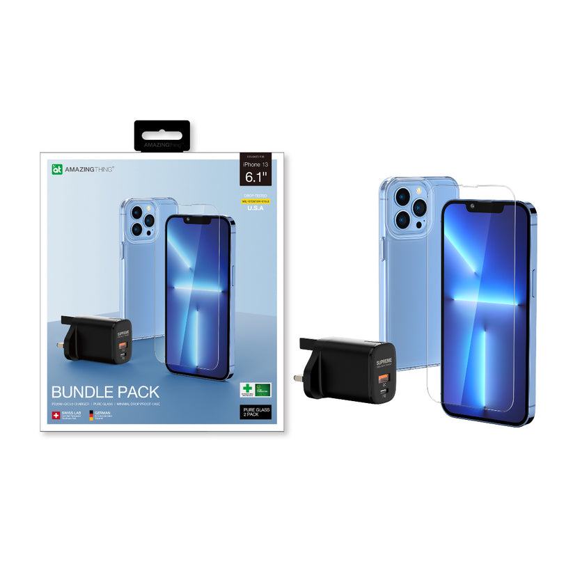 حزمة أشياء مذهلة لهاتف iPhone 13: 1 قطعة محول شحن 20 واط + 1 قطعة غطاء حماية مقاوم للسقوط + 2 قطعة زجاج مقسى