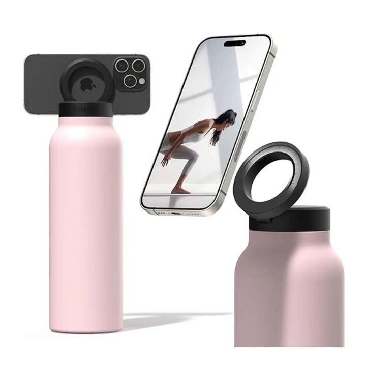زجاجة ماء RINGO، 32 أونصة/1 لتر، غطاء لولبي MagSafe، حلقة معززة MagSafe، وردي