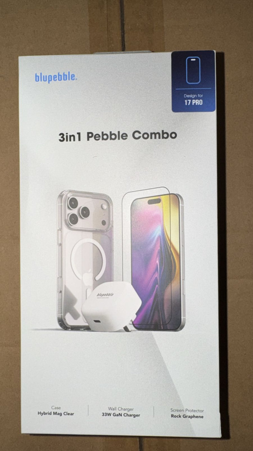 Blupebble bundle for iPhone 17 Pro (30W USB-C Adapter + Glass Screen Protector + Clear Case)