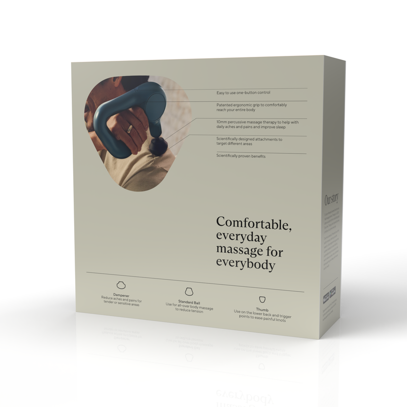 - The patented triangle grip helps get to those hard-to-reach spots and 3 specialized attachments help treat everything from large muscles to tender, sensitive areas.